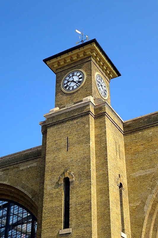 King's Cross, with the neighbouring St Pancras Station, is in the midst of redevelopment. The grime has been cleaned off, and a huge roof has been built to create an internal space from what was an open air concourse. The platforms are also now shielded from the elements. The historic facade and clock tower have been preserved.